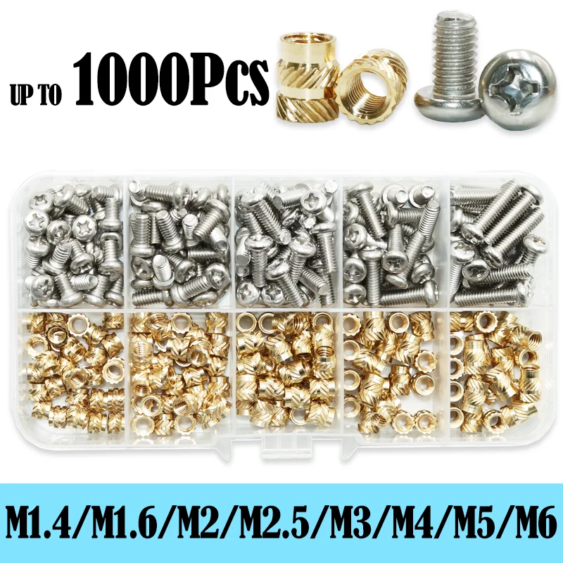 Brass Hot Melt Knurled Insert Nut 304 Stainless Steel Screw Threaded Embedded Copper Nut Bolt Set Kit Printer M1 M1.4 M1.6 M1.7  Read more