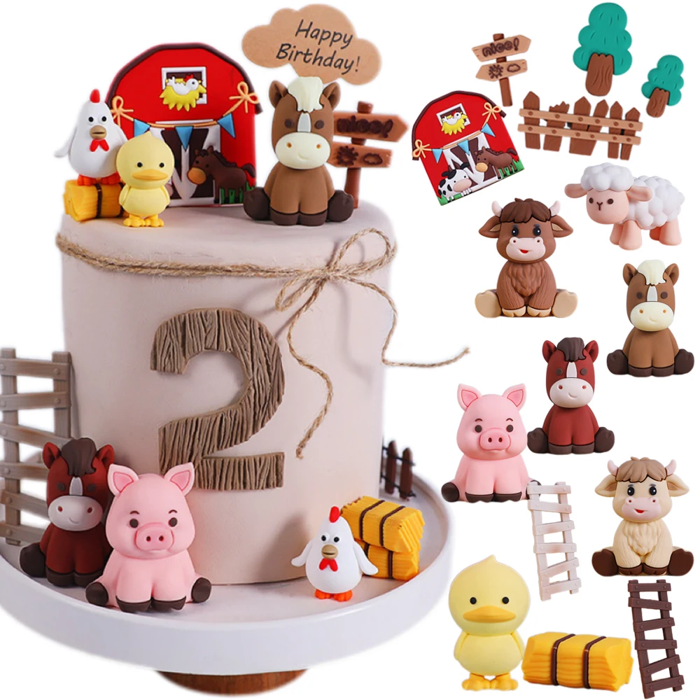 Pastoral Farm Animal Cake Decor Ornament Sheep Small Horse Little Pig Little Chicken Kids Birthday Baby Shower Party Cake Decor