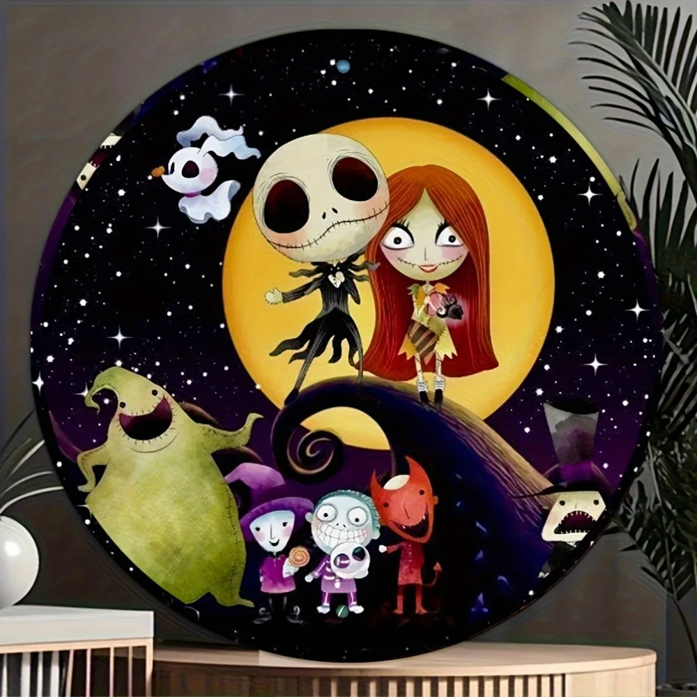 Disney. Vintage Circular Metal Aluminum Plate Painting, Decorative Painting, Jack Skellington & The Nightmare Before Christmas,