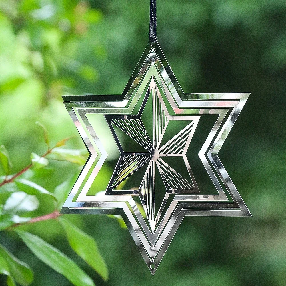 3D Rotating Metatron Hexagram Wind Chimes Metal Hanging Decorations Snowflake Ornament for Christmas Room Garden Crafts