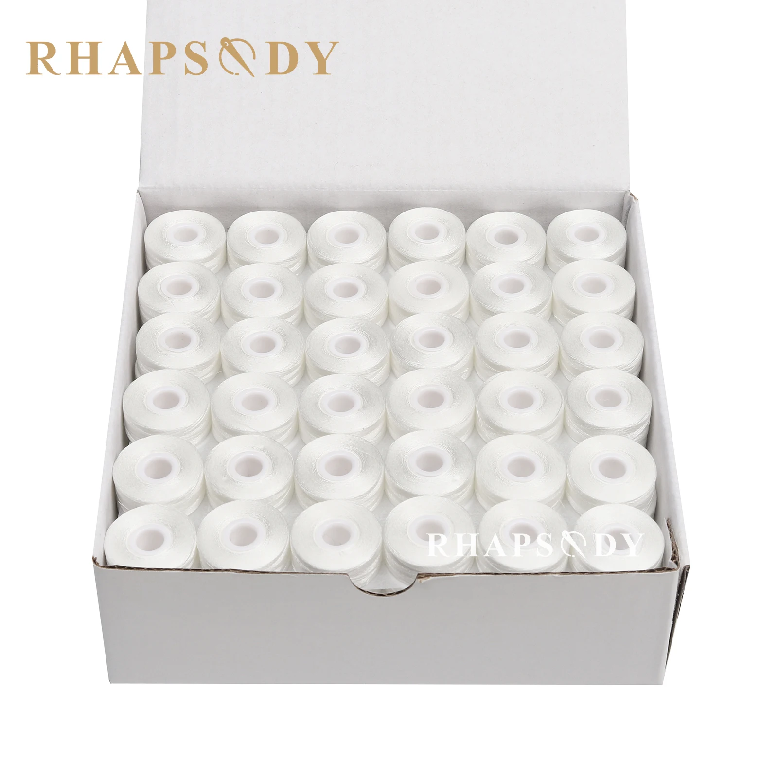 Rhapsody 144pcs Type L SA155 Prewound Bobbin Thread 75D 60WT Sideless for Commercial Home Embroidery Sewing Machines White Black