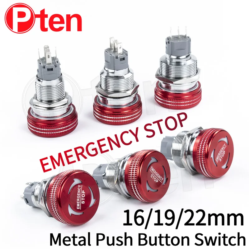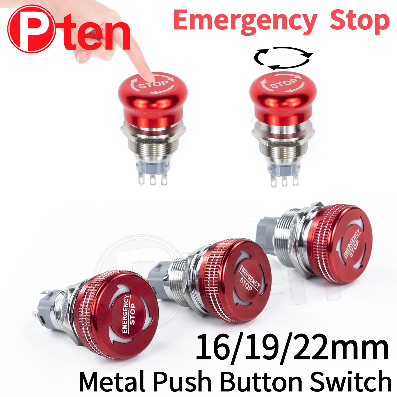 16/19/22mm Metal Emergency Stop Button Switch stainless steel waterproof mushroom head Rotation reset Anti-slip with lights PTEN