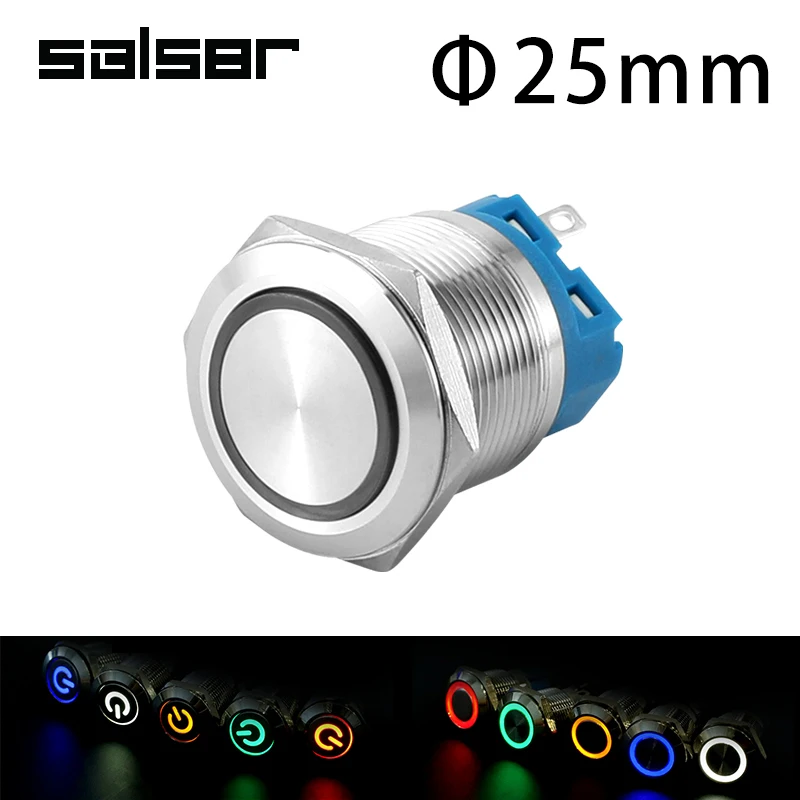 25mm Metal Push Button Switch DIY Reset Self Locking Ring Power Supply With Lamp Flat Circular Waterproof Stainless Steel