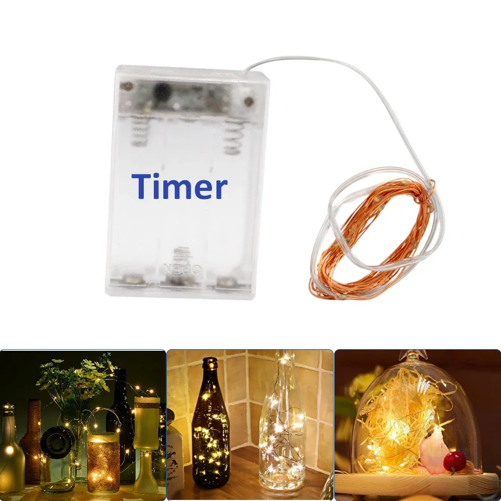 2M Battery Box Timing Light String Copper Wire Fairy 3AA Battery 20LEDs Cold Warm White for Christmas Party Wedding Decorations