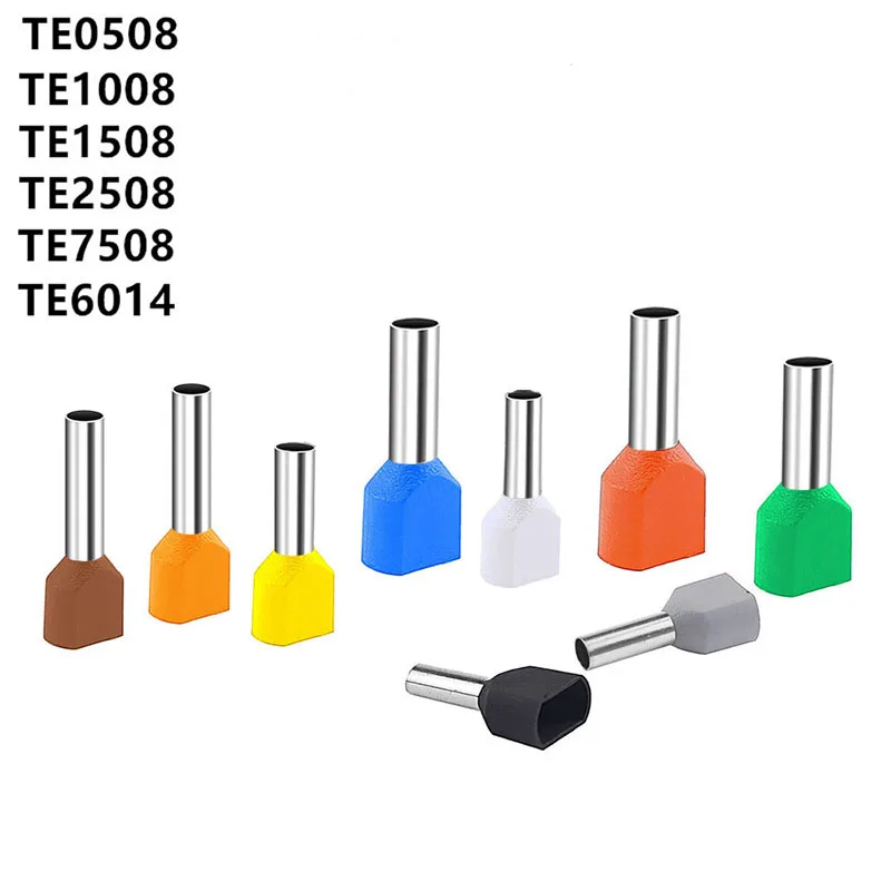 100PCS/package TE0508 TE1008 TE1508 TE2508 TE6014 Double Pipe Cold End Double Wire Tubular Insulated Tubular Terminal  Read more