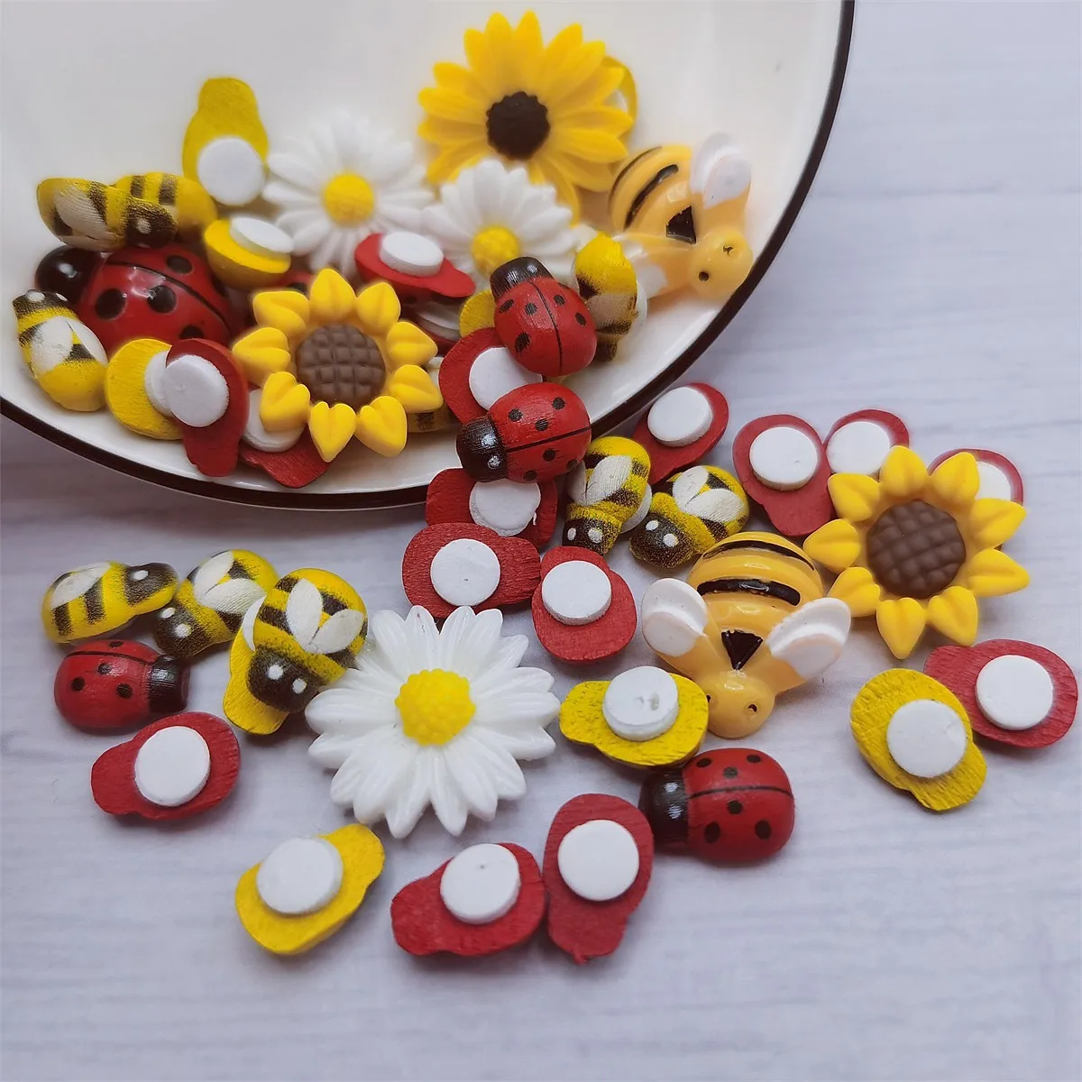 50pcs 13~22mm Self-Adhesive Resin Wood Mixed Bees Ladybugs Daisy Sunflower Flatback Stickers Embellishments For DIY Scrapbooking  Read more