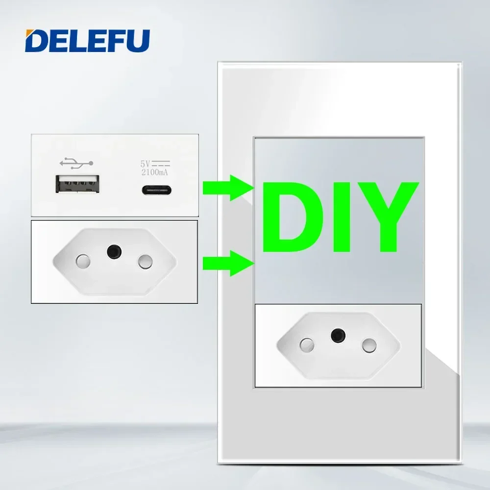 DELEFU Brazilian Italian US EU Standard Free Combination Function USB Type C Key DIY Switch Socket 118mm*72mm White  Read more