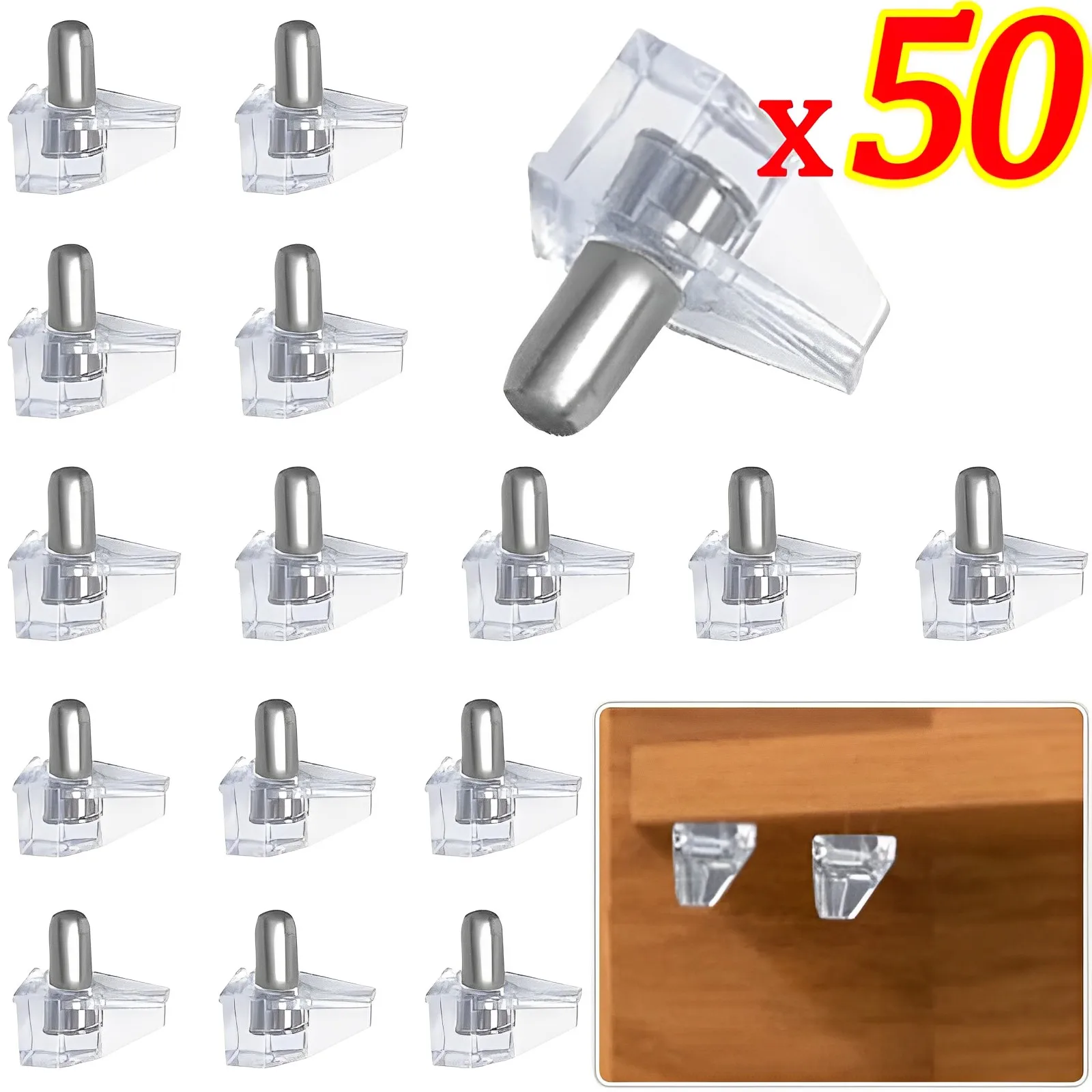 50/10PCS Transparent Shelf Stud Pegs Plastic Laminate Support Fixed Cabinet Shelves Glass Plate Support Furniture Bracket Holder