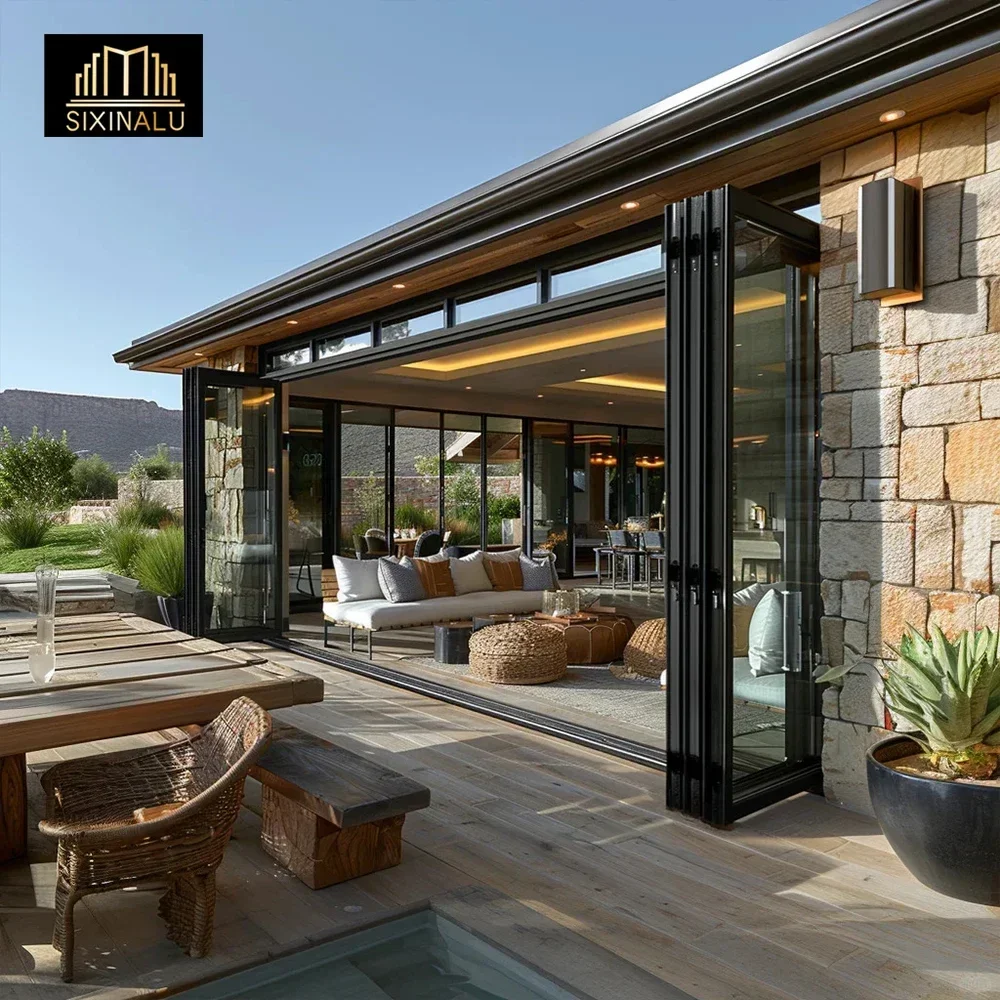 Sixinalu Bi-Fold Door With Screens Sliding Exterior Accordion Entry Doors Aluminum Double Glass Interior Garden Home Custom