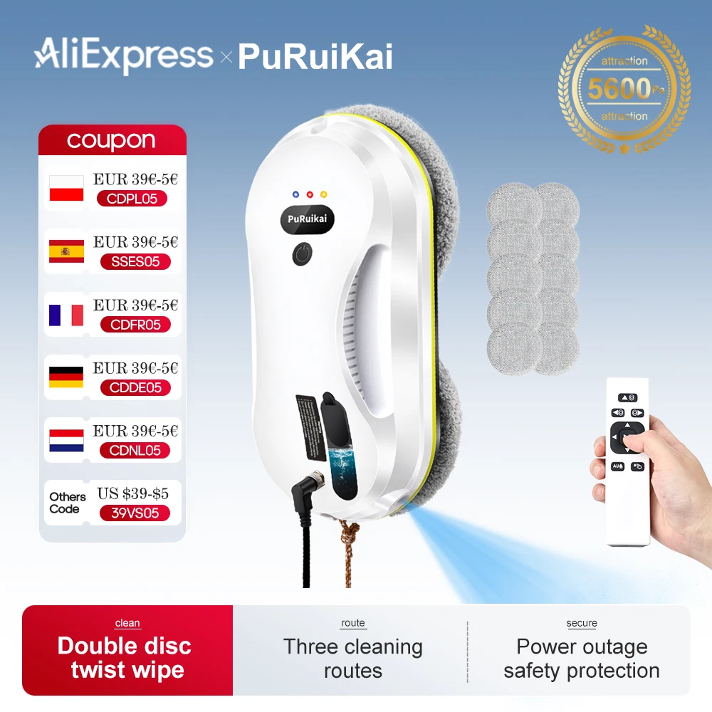 PuRuiKai Window Cleaning Robot Automatic Cleaning with Intelligent Path Planning, 5600Pa Suction Power, Edge Detection Tech  Read more