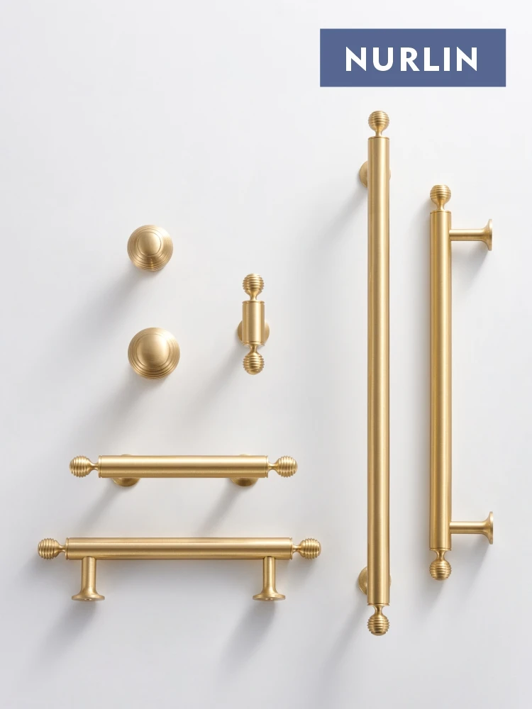 Nurlin French Luxury Solid Brass Kitchen Cabinet Furniture Drawer Cabinet Door Handle Round Knobs T-Bar Wardrobe Pull