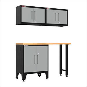 This 4-piece garage cabinet system combines versatile oversized shelves and drawers with space-saving wall storage to help you get organized fast.