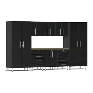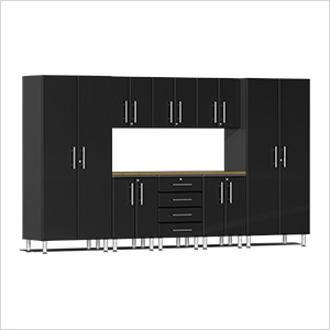 Ulti-MATE Garage Cabinets 9-Piece Garage Cabinet Kit with Bamboo Worktop in Midnight Black Metallic