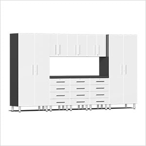 Ulti-MATE Garage Cabinets 9-Piece Garage Cabinet Kit with Channeled Worktop in Starfire White Metallic