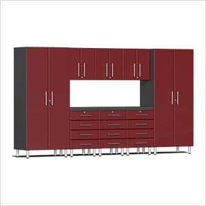 Ulti-MATE Garage Cabinets 9-Piece Garage Cabinet Kit with Channeled Worktop in Ruby Red Metallic