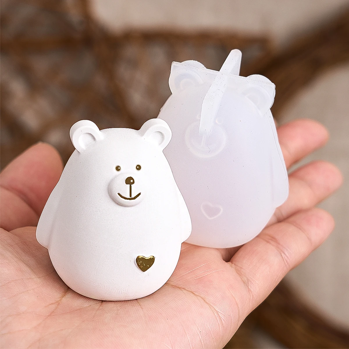3D Cute Little Bear Candle Silicone Mold DIY Handmade Love Gypsum Concrete Casting Ornament Resin Mold Home Desktop Handicrafts