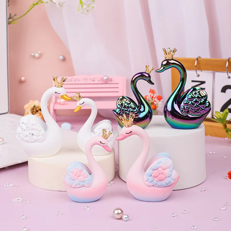 Couple Swan Figurines Car Office Desktop Resin Ornaments Love Swan Sculpture Valentine's Day Girls Gift Home Decor Miniatures  Read more