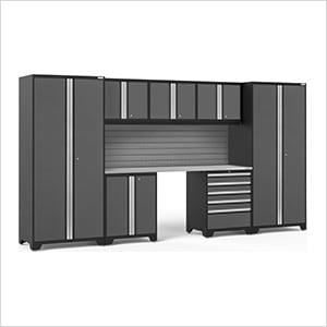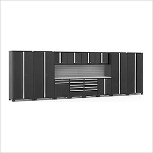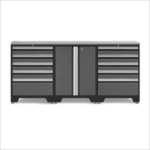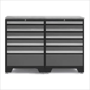 The NewAge Products tool cabinet storage set is made with durable 18-gauge steel frames and 19-gauge double-wall drawer fronts, finished with a sleek stainless steel work surface.