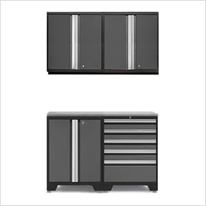 This NewAge Bold garage organization system is designed with large, easy-to grab handles spanning the full length of the partial double wall reinforced steel doors and drawers.