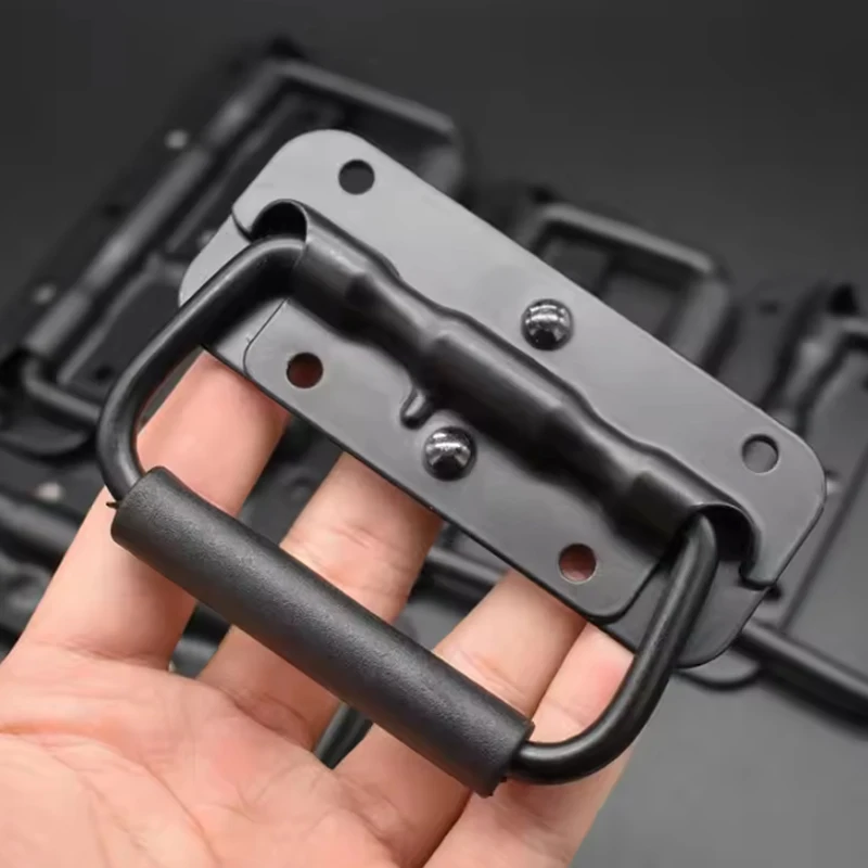 Iron Material Spring Handle Black Luggage Spring Handle Folding HandleTool Box Movable Ring Industrial Equipment Cabinet 3 Size
