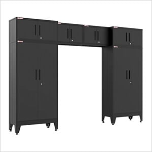 Armadillo Tough Black 8-Piece Garage Cabinet Set with Levelers and Casters