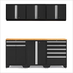 NewAge Garage Cabinets PRO Black 7-Piece Workbench Set with Bamboo Top