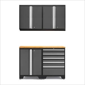 NewAge Garage Cabinets PRO Grey 5-Piece Work Station with Bamboo Top