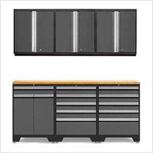 NewAge Garage Cabinets PRO Grey 7-Piece Garage Cabinet Set with Bamboo Top