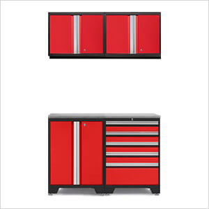 NewAge Garage Cabinets PRO Red 5-Piece Work Station with Stainless Steel Top