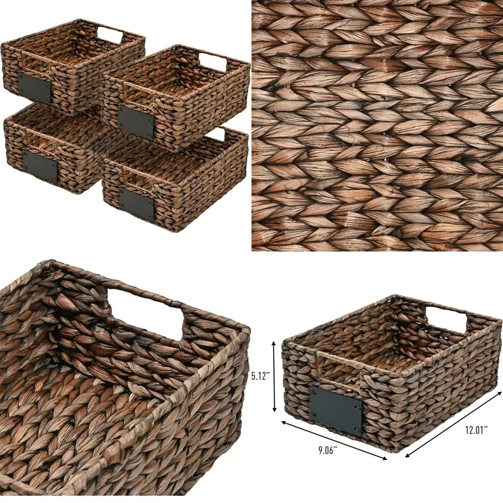 happimess BSK2008B-SET4 Lane 12 Classic Farmhouse Handwoven Hyacinth Pantry Wicker Storage Baskets with Chalkboard Labels and Ha