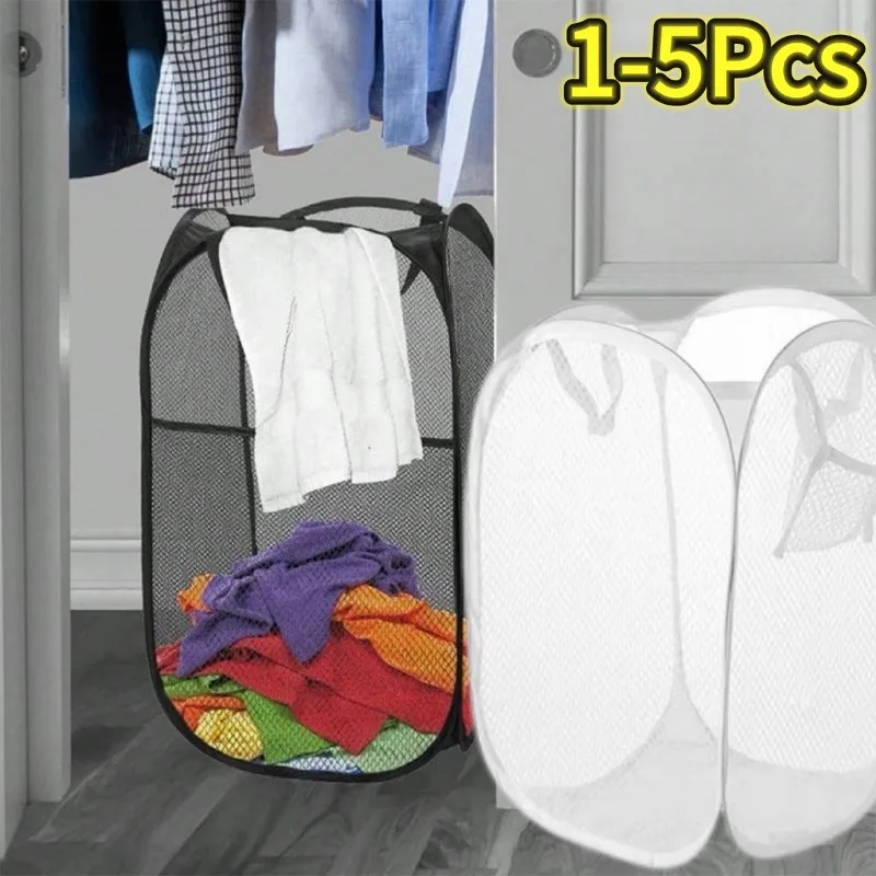 1-5pcs Horizontal Foldable Laundry Basket Mesh Cloth Breathable Laundry Hamper Home Accessories Large Capacity Storage Baskets  Read more