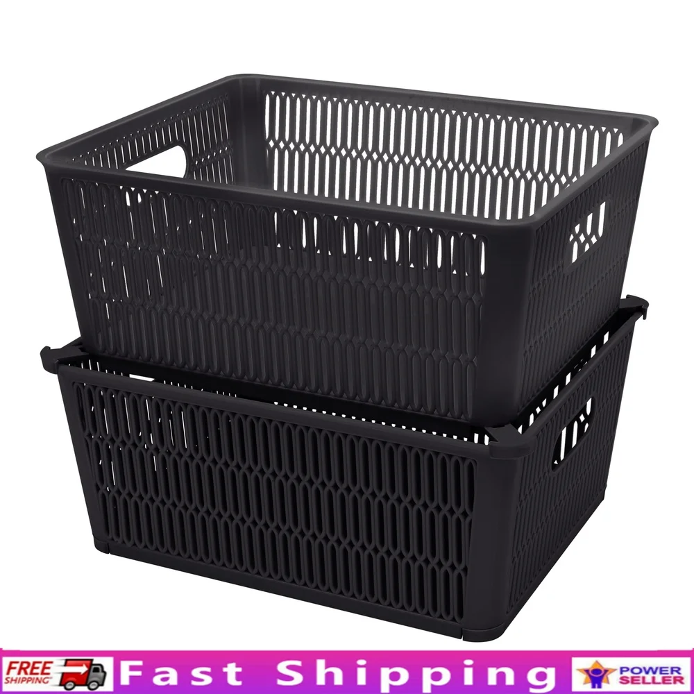 Slide 2 Stack It Plastic Storage Tote Baskets 2 Pack Stackable Organizing Bins with Handles Maximize Storage Space Home