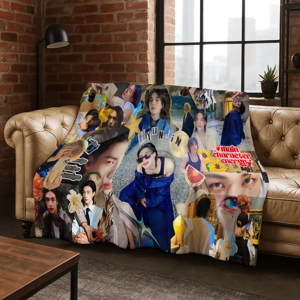 3D Print Stray Kids Kpop Star Hyunjin Flannel Blanket Soft Warm Blanket for Bedroom Living Room Bed Travel Camping Picnic Gift