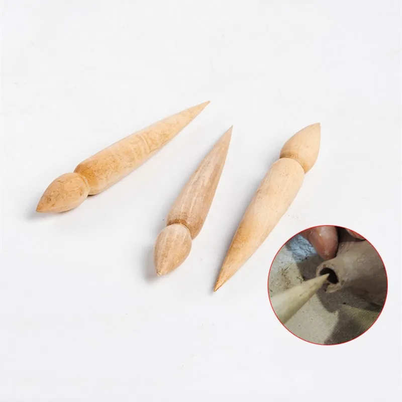 Pottery Spout Modifier Teapot Wooden Pot Crafts Modeling Repair Tool Wooden Double-head Punch Manual DIY Pottery Tool