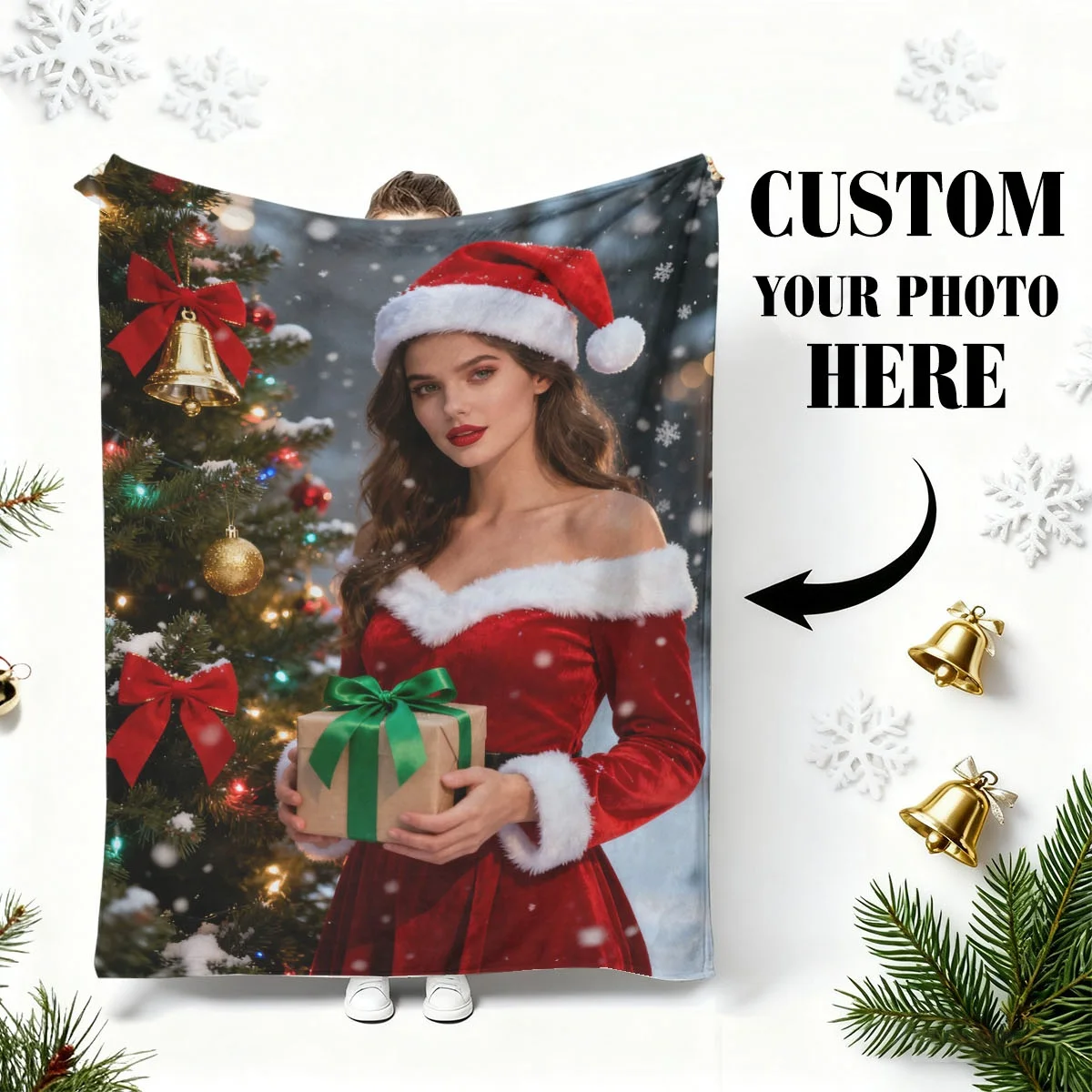 1 Custom Christmas Personalized Photo Flannel Blanket - High-Definition Print That Doesn'T Fade, Lightweight, Warm, Skin-Friendly, Machine Washable, Suitable for Bedroom, Sofa, Office, Christmas