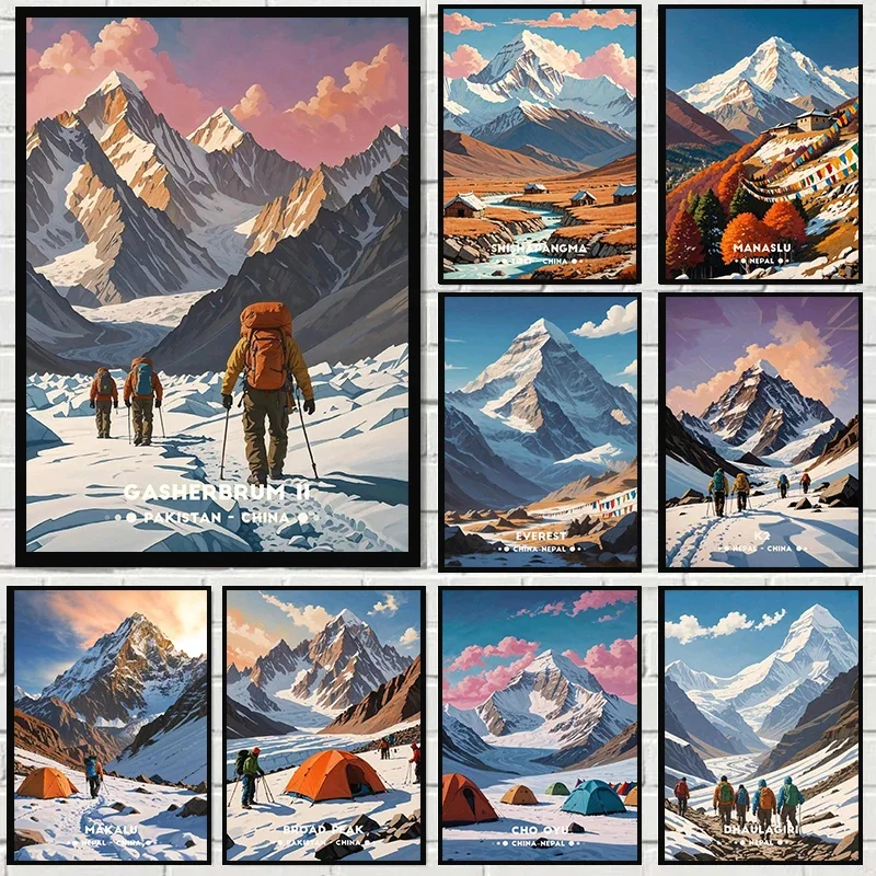 Stunning Mountain Landscape Posters Himalayan Nepal India Camping Prints Adventure Canvas Painting Wall Pictures Home Room Decor