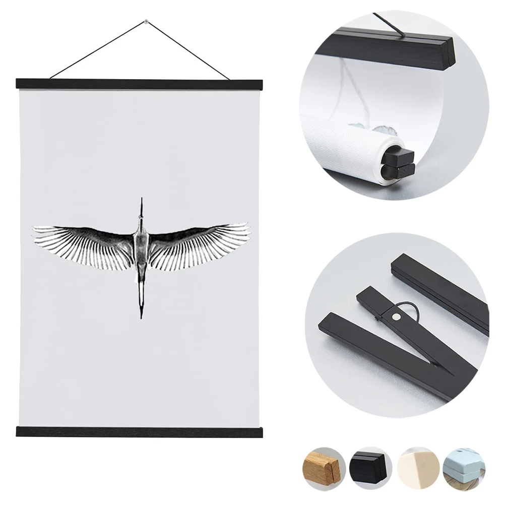 Magnetic DIY Wood Poster Frame Teak/Pine Photo Hangers Hanging Kit for Pictures Canvas Prints Poster Scroll Artwork Print Holder