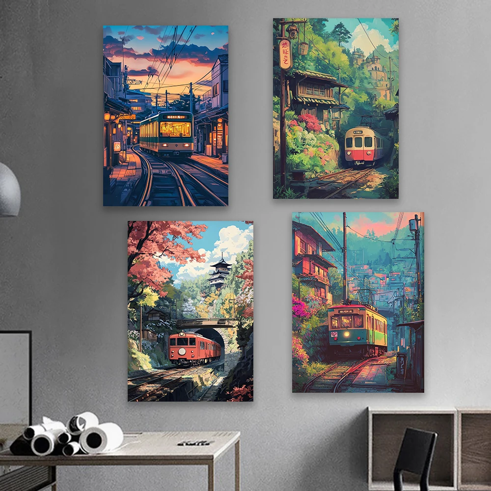 Anime Style Train Journey Poster Vintage Travel Bedroom Decor Nature Landscape Wall Art Prints Home Aesthetic Japanese Art