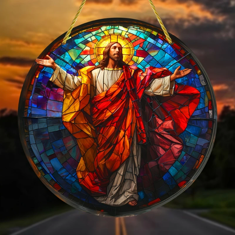 3D Printed Jesus Themed Acrylic Window Pendant Suncatcher Ornaments For Holiday Home Room Car Decor Christans Gift Wall Signs