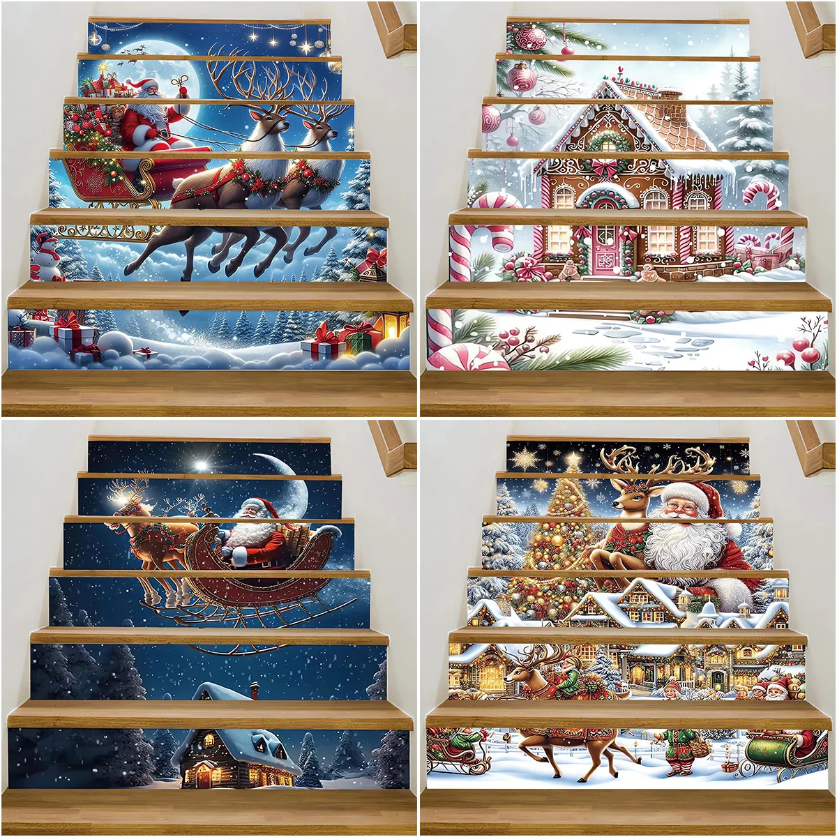 Christmas Staircase Dimensional Decals Santa Claus Christmas Tree And Gifts Theme Decoration Staircase Banner Backgrounds  Read more