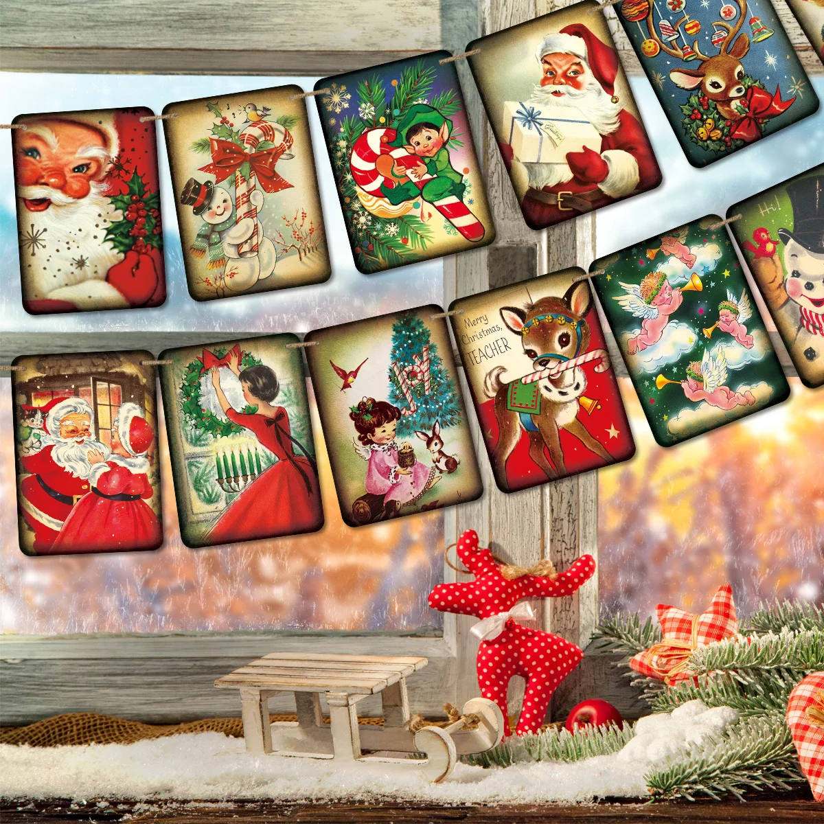 1 Set Christmas Decorations Vintage Style Christmas Banner, Victorian Style Christmas Bunting, Santa Christmas Banner Home Decor  Read more