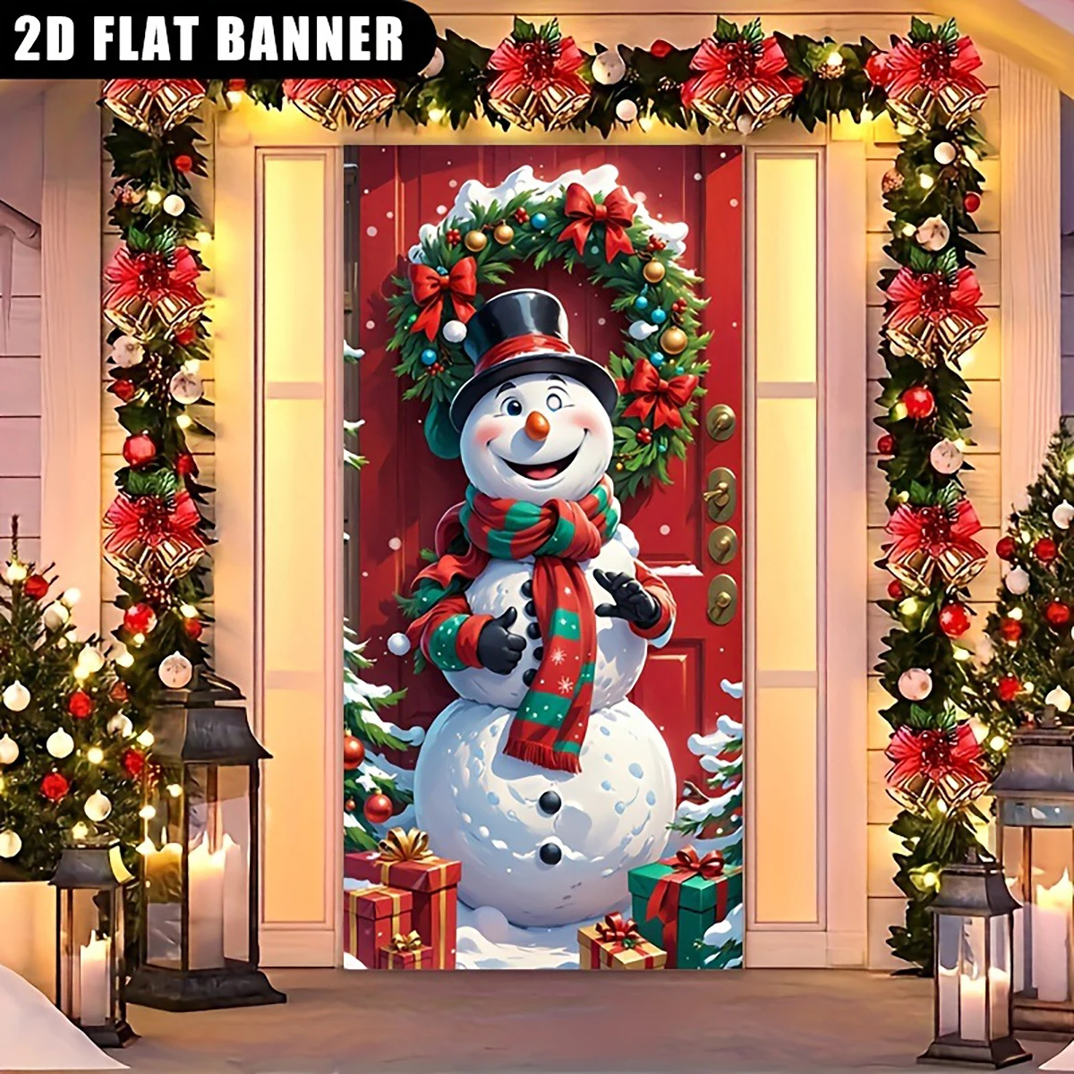 1 Piece Christmas Themed Door Flag Banner, Cute Christmas Snowman Decorative Banner, Holiday Home Decoration