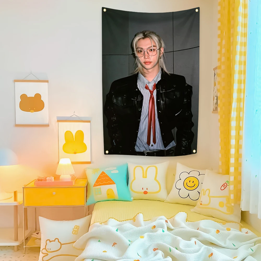 Kpop Boy Group Member Felixs Tapestry American Flag Four Holes Background Korean Idol Home Decor Concert Banner  Read more