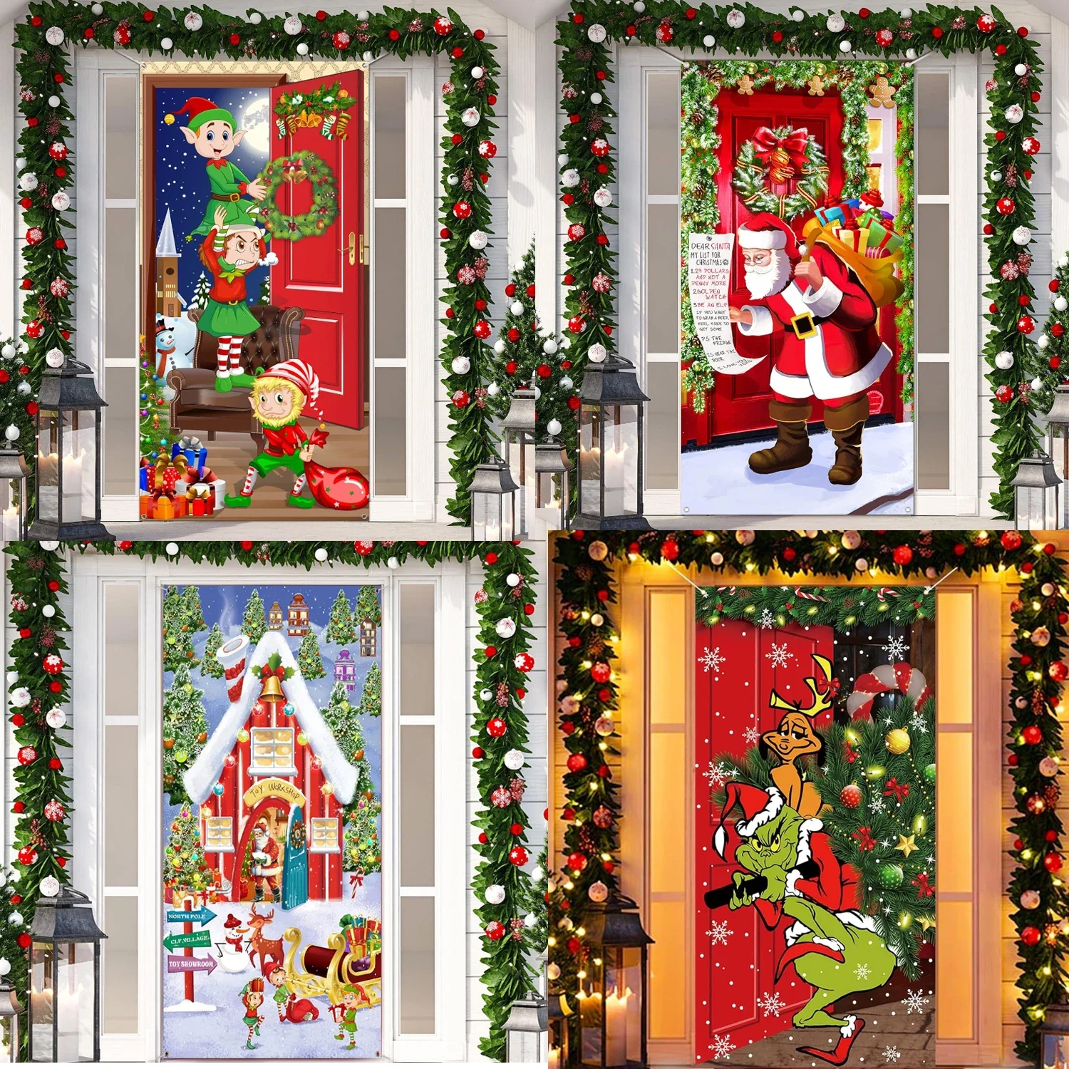 Christmas Decor Door Cover Merry Christmas Door Photography Banner Christmas Xmas Winter Holiday Home Kitchen Outdoor Supplies  Read more