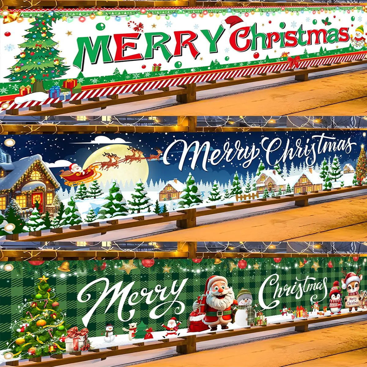 Christmas Outdoor Banner Flag Merry Christmas Decoration for Home 2025 Xmas Ornament Navidad Natal Noel Gift Happy New Year 2026