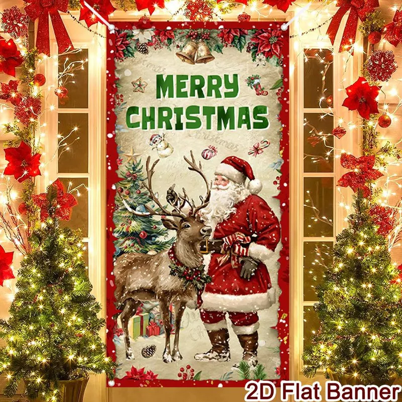 Christmas Hanging Flag Santa Claus Door Banner Christmas Decoration For Home 2025 Xmas Ornament Navidad Natal New Year Gift 2026