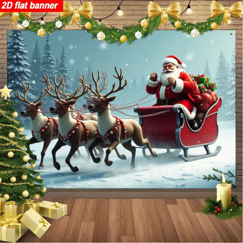 1pc2D flat, Christmas theme background cloth banner, Christmas party decoration, outdoor, home, no power required wsj