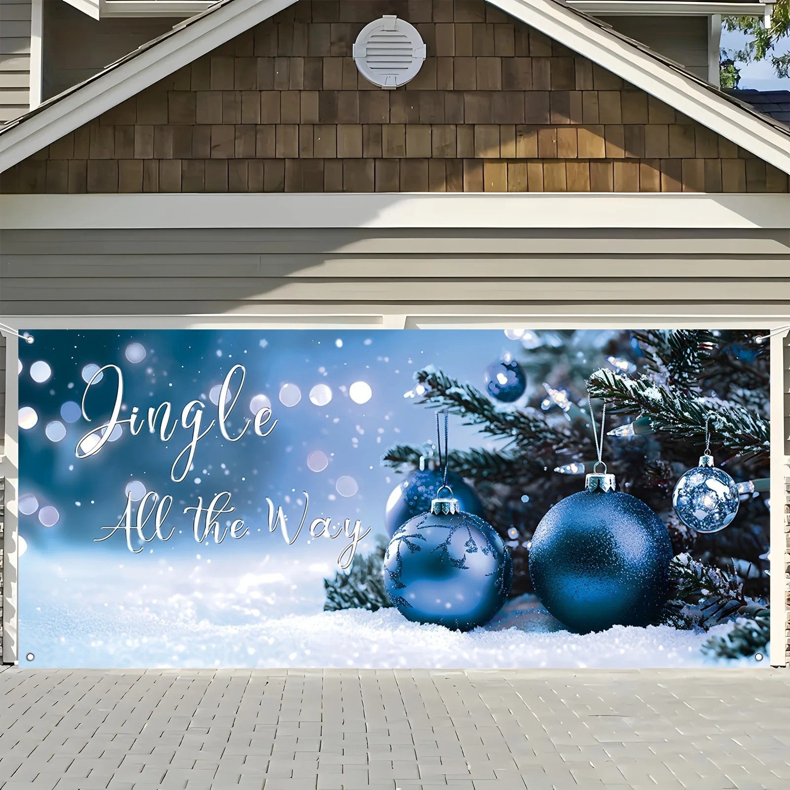Blue and white Christmas garage door banner, home and yard holiday decoration