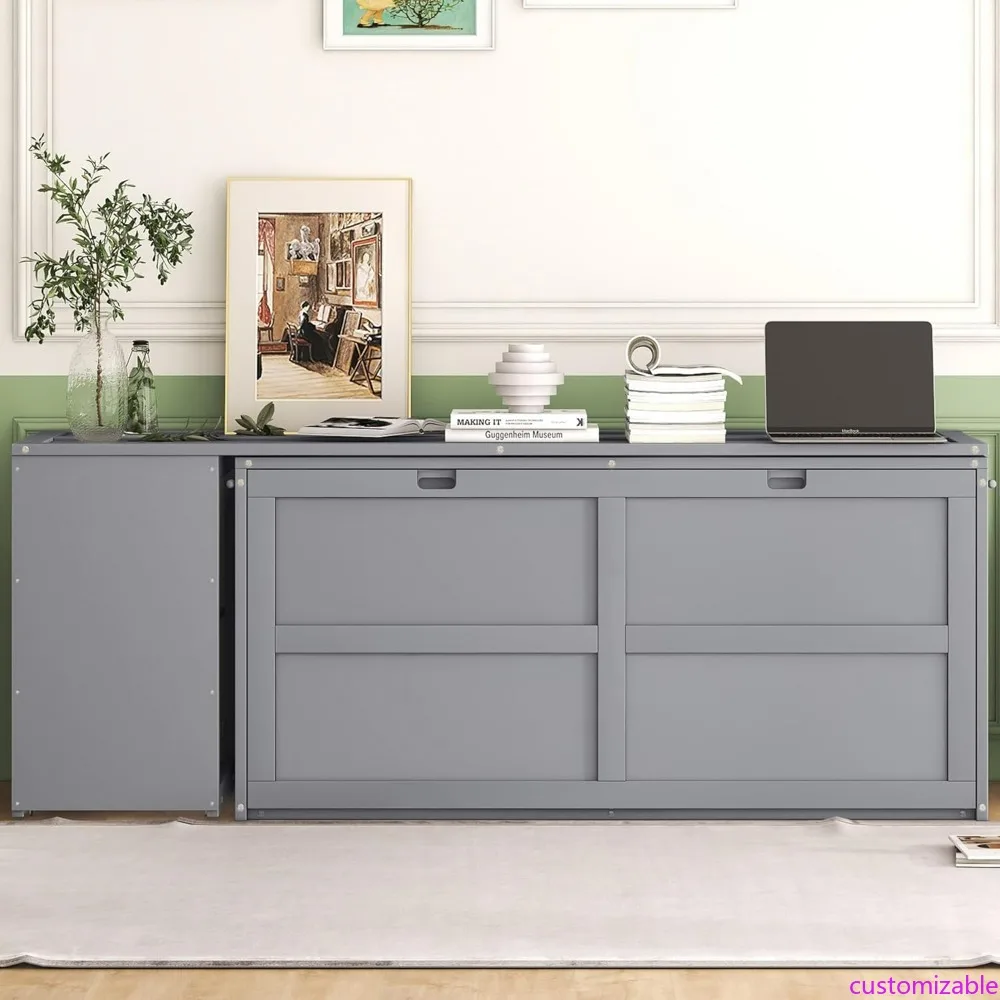 Wooden Rotating Invisible Folding Bed Combination Multi Functional Wardrobe Cabinets Desk Bookcase Murphy Bed bookshelf storage