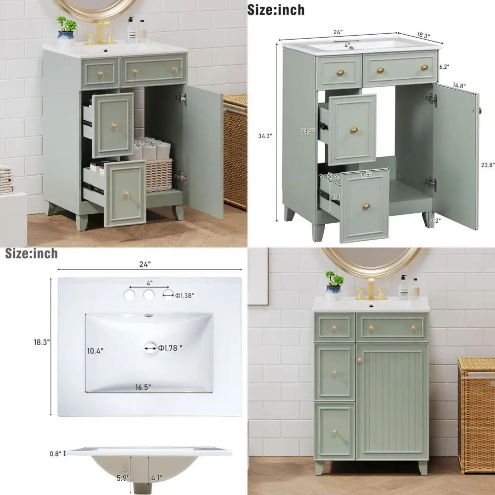 24" freestanding single basin bathroom vanity set with two drawers and one door